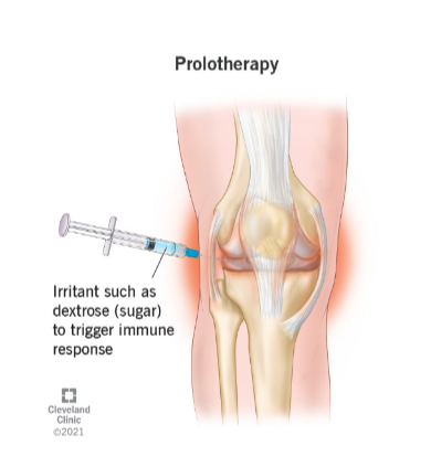 A natural irritant solution is injected into the weakened connective tissue. This: